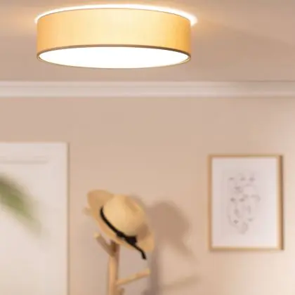 Beschrijving Bright Choice LED Plafondlamp Rond Textiel Bruin | 500mm - Geschikt voor 3x E27 – Max 40W