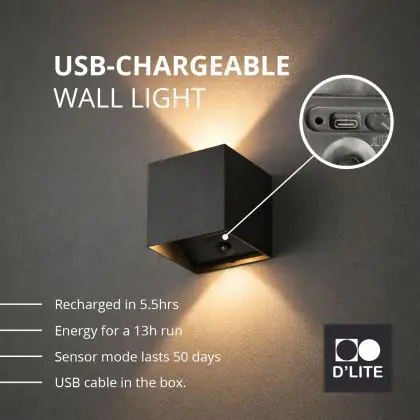 Geef je buitenruimte een moderne upgrade met de D'Lite LED Wandlamp Elingen Up & Down – draadloos, stijlvol en weerbestendig.