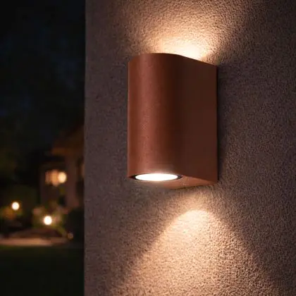 Beschrijving D'Lite Wandlamp Vossem Metaal Roestig Up & Down| IP54 - Geschikt voor 2x GU10