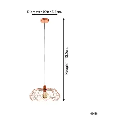Beschrijving Eglo Hanglamp Carlton 2 Staal Koper | IP20 - Geschikt voor 1x E27