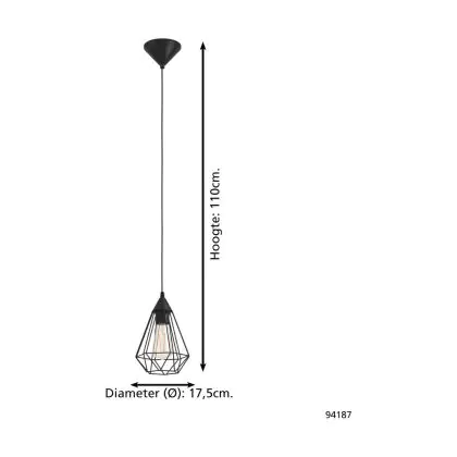 Beschrijving Eglo Hanglamp Tarbes Zwart | IP20 - Geschikt voor 1x E27