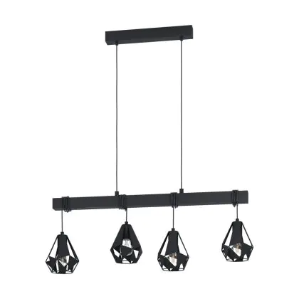 Eglo Hanglamp Townshend 7 Staal Hout Zwart | IP20 - Geschikt voor 4x E27