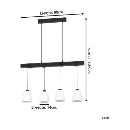 Beschrijving Eglo Hanglamp Townshend 8 Staal Hout Zwart | IP20 - Geschikt voor 4x E27