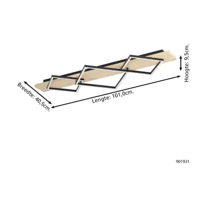 Beschrijving Eglo Plafondlamp Boyal Staal Hout Zwart Bruin 13W 1750lm - 830 Warm Wit | IP20