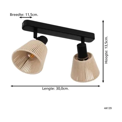 Beschrijving Eglo Plafondlamp Seagard Staal Zwart | IP20 - Geschikt voor 2x E14