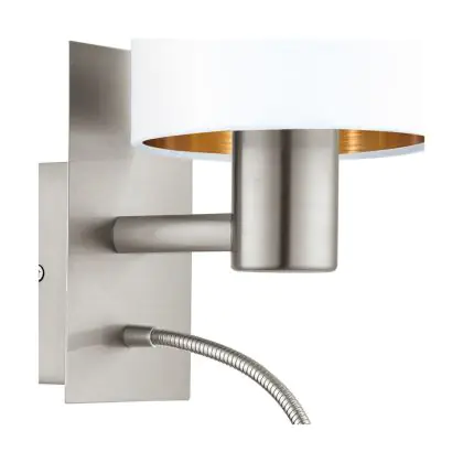Eglo Wandlamp Pasteri Staal Satijn Nikkel 40 | IP20 - Incl. Spot en Excl. 1x E27