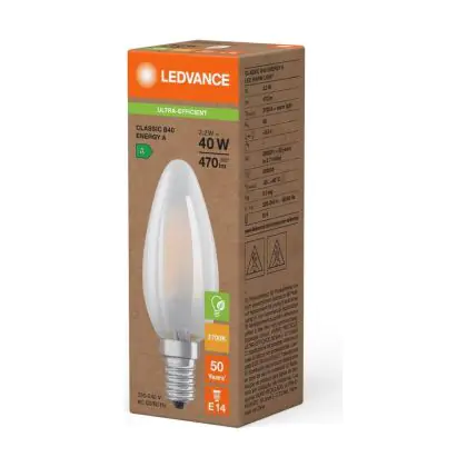 Ledvance LED Classic E14 Kaars Filament Mat 2.2W 470lm - 827 Zeer Warm Wit | Vervangt 40W