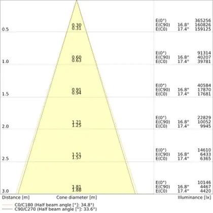 Dit armatuur heeft de kleurtemperatuur . Wat houdt dit eigenlijk in? Lichtkleuren bepalen de sfeer in een ruimte. Zo is warm wit (3000K) geschikt voor algemene ruimtes en stallen, koel wit (4000K) voor stallen, magazijnen, loodsen en productiehallen, en daglicht wit (6500K) voor productiehallen (detailwerk). Bepaalde omgevingen kunnen verlicht worden met meerdere lichtkleuren. Dit heeft met name te maken met de hoeveelheid natuurlijk daglicht in de ruimte; hoe minder dit is, hoe koeler de lichtkleur keuze. Het licht van deze LED high bay wordt verspreid in een stralingshoek van 35°.