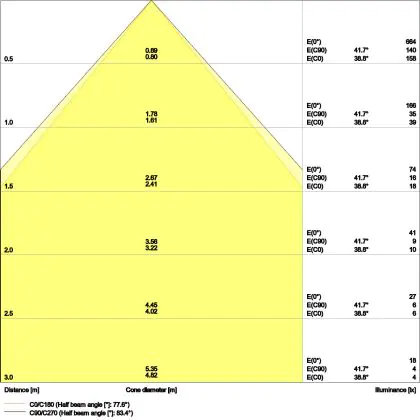 ![]() De kleurcode is een combinatie van de kleurweergave (CRI) en lichtkleur (Kelvin). Het eerste getal is de kleurweergave (1 = zeer slechte kleurweergave, 9 = maximale kleurechtheid). Het tweede en derde cijfer betreft de lichtkleur. Een lamp met kleurcode 830 heeft bijvoorbeeld een goede kleurweergave en straalt een warm wit licht uit (3000K), waar een lamp met de kleurcode 940 een uitstekende CRI heeft en een koel wit licht (4000K) uitstraalt. |