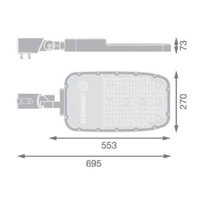 Beschrijving Ledvance LED Straatverlichting Area Extra Large RV35ST Aluminium Grijs 150W 20250lm 155X69D - 765 Daglicht | IP66 - Asymmetrisch