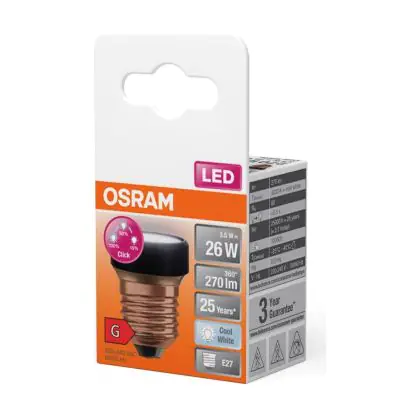 Beschrijving Osram LED Plat Lamp LED E27 Special Mat 3.5W 270lm - 840 Koel Wit | 3-Staps Dimbaar - Vervangt 25W