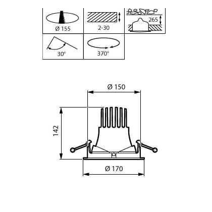 Goed om te weten is dat deze LED inbouwspot een zaagmaat heeft van 170mm en een diameter van 170mm. Dit wil zeggen dat het gat in het systeemplafond of het verlaagde plafond een afmeting dient te hebben van 170mm om het armatuur stevig in het plafond te bevestigen. De spot zelf is voorzien van twee handige klemmetjes, die uitzetten zodra het armatuur in de gat is geplaatst. Zo geregeld dus! Vanaf het moment van aanschaf ontvang je 5 jaar all-in garantie. Hierdoor ben je verzekerd dat de inbouwspot ook doet wat die hoort te doen: zonder problemen een ruimte verlichten!