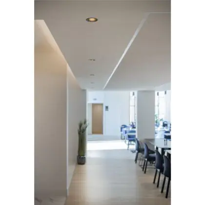 Vele LED inbouwspots bij Lampdirect zijn dimbaar, maar voor deze inbouwspot geldt specifiek: ‘Dimbaar i.c.m. dimbare lamp’. Het voordeel van een dimbare LED inbouwspot is dat je de lichtintensiteit kunt aanpassen aan de hoeveelheid licht die de ruimte nodig heeft. Zo heb je bijvoorbeeld meer licht nodig als een ruimte gebruikt wordt voor een vergadering, als wanneer diezelfde ruimte na het overleg gebruikt wordt voor een borrel.
