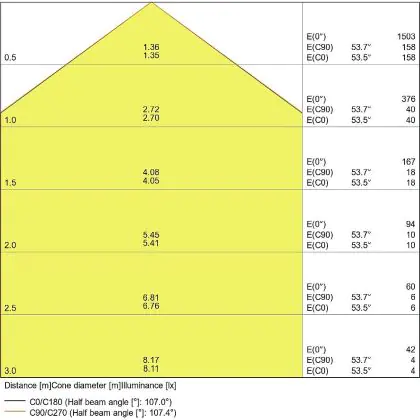 De gradenbundel geeft informatie over hoe breed het licht wordt uitgestraald. Dit zit tussen de 0 en 360 graden (D). Hoe kleiner de hoek, hoe specifieker de lichtbundel is. Over het algemeen is een smalle gradenbundel perfect voor sfeer- of accentverlichting, terwijl een brede gradenbundel ideaal is om grote oppervlaktes te verlichten.